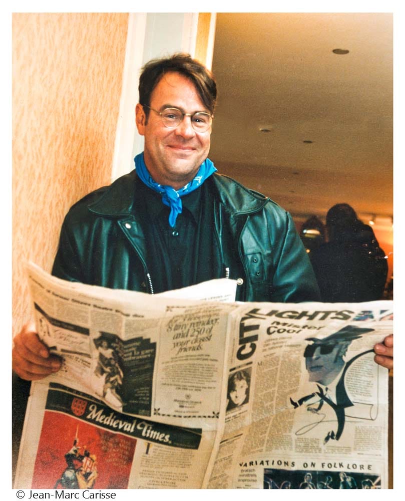 Dan Aykroyd poses with Ottawa Citizen, which contains a Blues Brothers' article. I made this photo at the Chateau Laurier in Ottawa. photo © Jean-Marc Carisse c.1990s