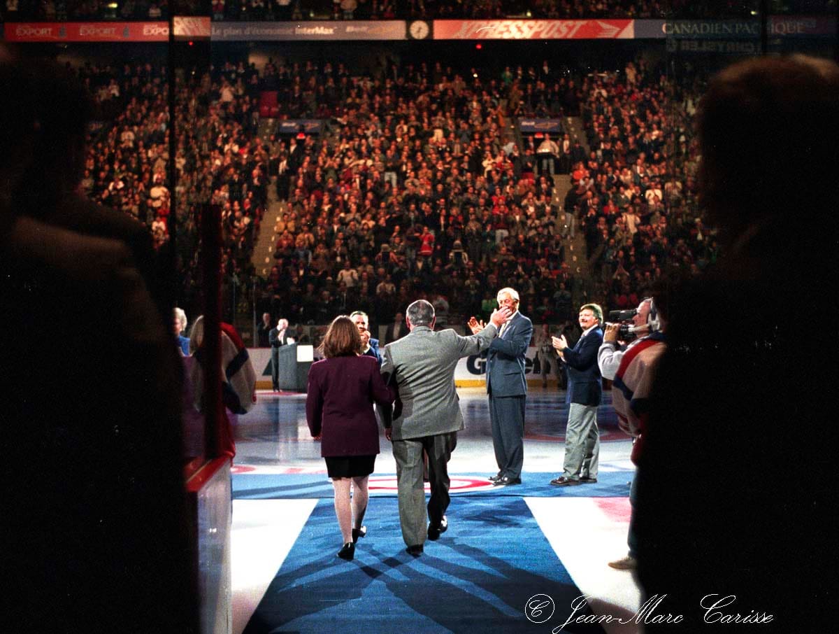 Maurice Richard is introduced in the new Molson (now Bell) Centre in Montreal, photo ©Jean-Marc Carisse 1996