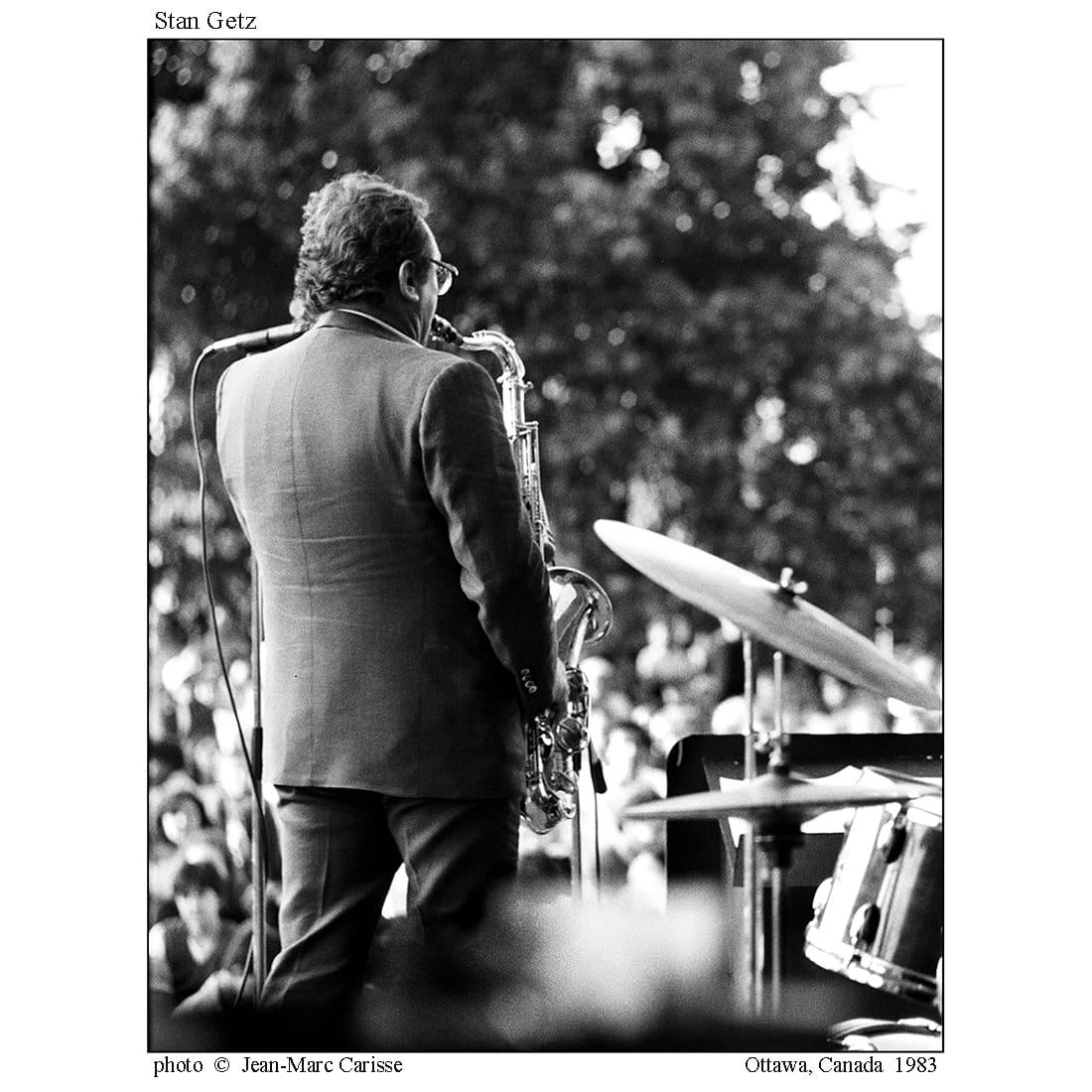 Saxophonist Stan Getz performs on stage behind the famous Chateau Laurier in Ottawa, photo © Jean-Marc Carisse 1983
