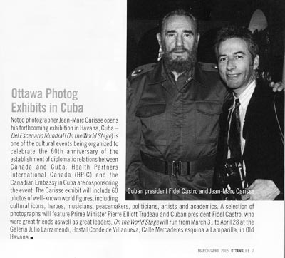 "On the World Stage / del Escenario Mundial" photo exhibit from Mar. 31 to Apr. 28, 2005, at Galeria Julio Larramendi in Havana, Cuba